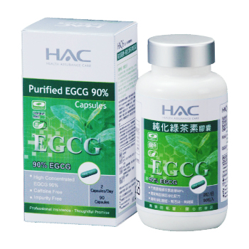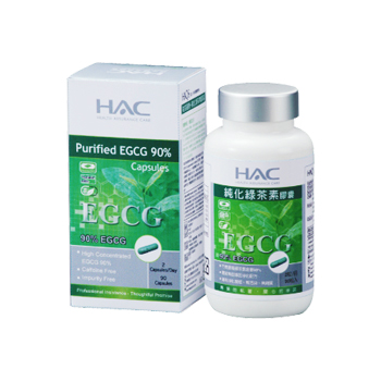 ※ HAC-純化綠茶素膠囊利用專利淨化抽提科技,將綠茶中最珍貴的天然健康成分EGCG(Epigallocatechin Gallate)即兒茶素,完整抽提出來(含量高達90%以上,一般抽提僅約10~40%),並藉由淨化過程去除咖啡因(咖啡因小於0.1%)、農藥、化學藥劑及污染物。