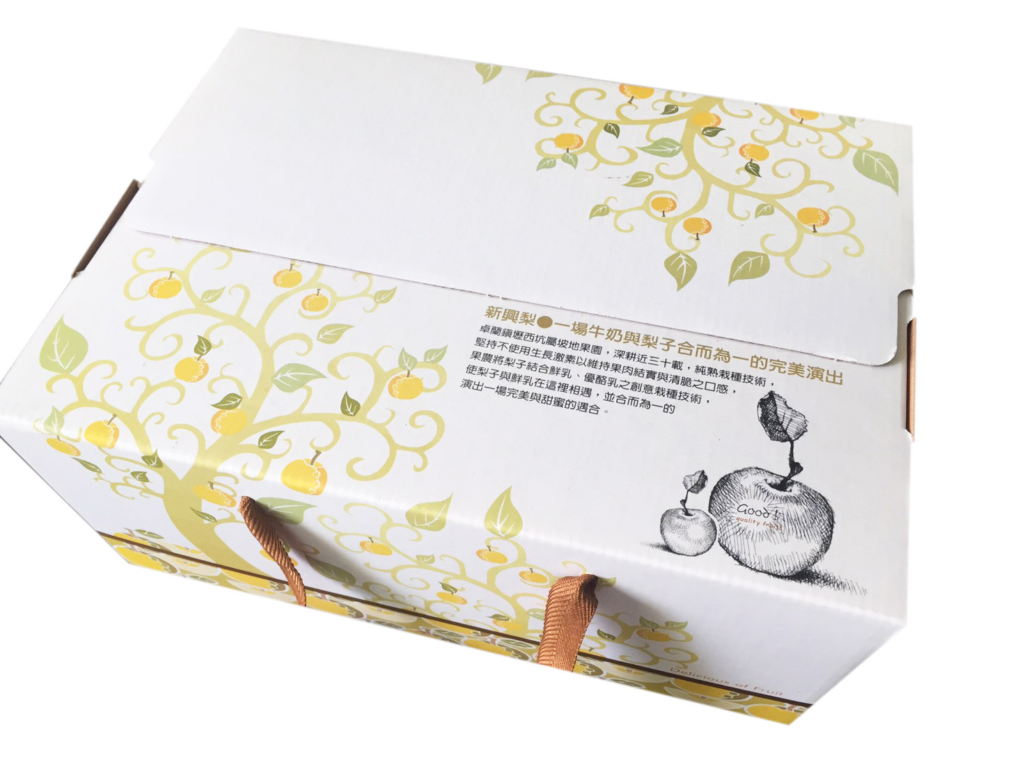 產地安心契作,以鮮奶、優酪乳灌溉栽種的「新興牛奶水梨」。堅持採自然、健康方式栽種。