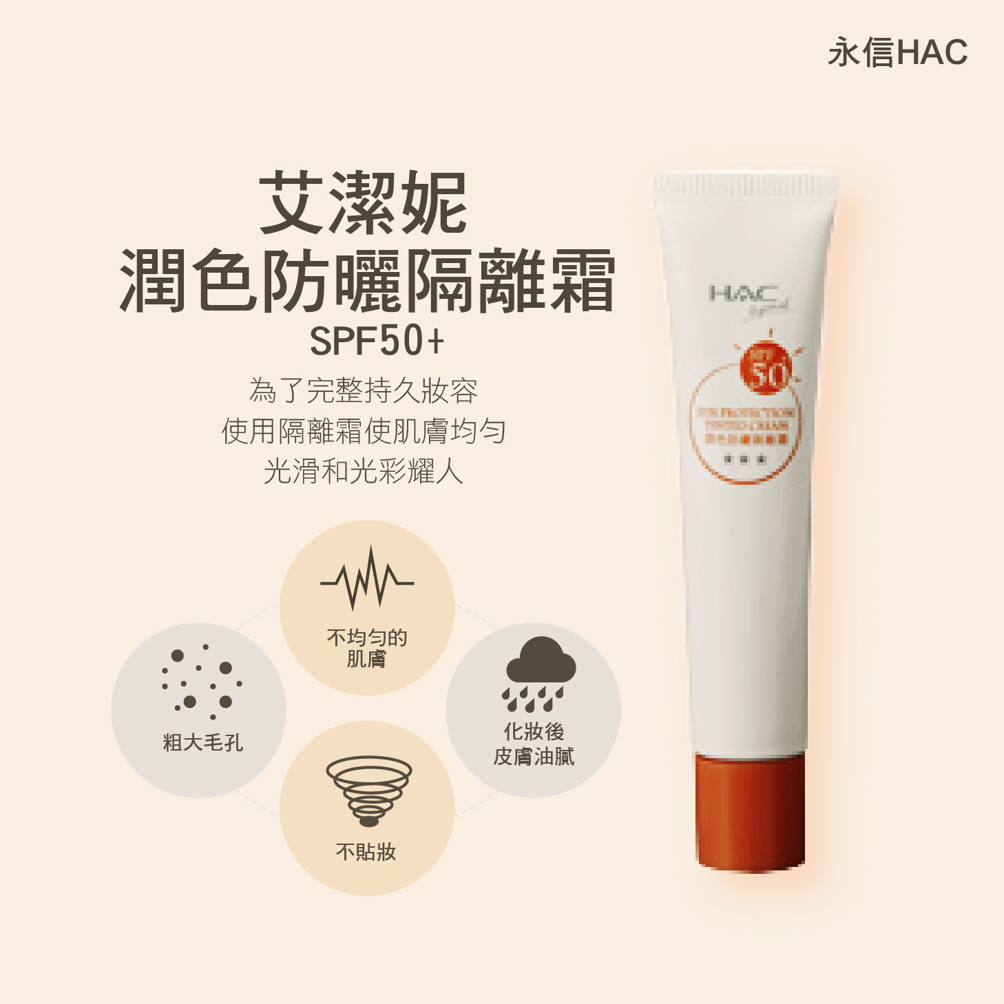 哈克麗康艾潔妮潤色防曬隔離霜為擁有防曬,隔離,修護,舒緩,保濕五效合一的潤色防曬產品,