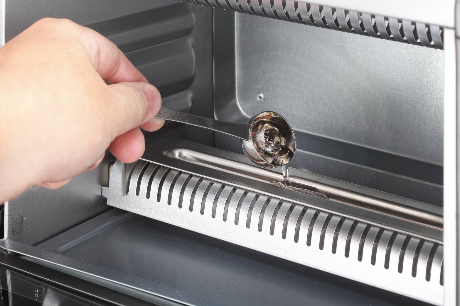 烤盤、烤架以及隨機附有的蒸氣水槽皆採抽拉式設計,使用完畢只要等機器冷卻後,便能抽出進行清潔。
