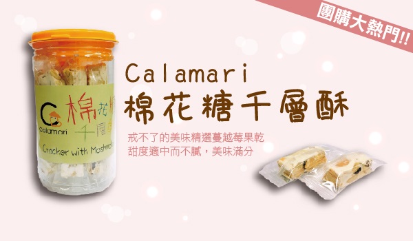 『Calamari千層酥』採用低溫慢焙,並搭配使用天然海藻糖,堅持不添加硬化劑與防腐劑,只想給您最好、最安心的可口點心,值得您細細品嚐,吮指回味。