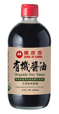 萬家香有機醬油以整顆非基因改造有機黃豆及有機小麥天然釀造而成。不含人工色素、調味劑及防腐劑。長達六個月的釀造過程創造出豐富口感與滋味。